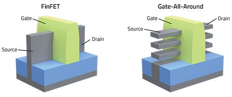 FinFET transistors vs. gate-all-around (GAA) transistors Source: Lam Research